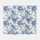 O padrão de cobertor de velo francês, azul e branco, do estilo Toile na moda, apresenta pavões em galhos.