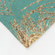 Bonito padrão de penas de pavão com brilho de ouro em fundo aqua.