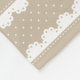Belo cobertor bege e branco de velo com bolinhas e listras.