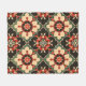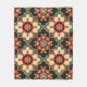 Esse trabalho de arte apresenta um intrincado medalhão com motivos florais e geométricos simétricos. O design é rico em detalhes, mostrando formas interligadas em uma paleta harmoniosa de cores vermelhas quentes, cremes macios e verdes úmidos em um fundo preto profundo. A disposição repetitiva e equilibrada dos elementos cria um sentido de ordem e elegância, reminiscente dos designs azulejos clássicos e trabalhos de arte ornamentais. A combinação de cores ousadas e padrões complexos agrega profundidade e interesse visual à composição geral.