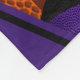 Esta seleção esportiva de basquete colorido cobertor efêmero apresenta as imagens de esferas de cesto realísticas e de tamanho variado que se viraram de qualquer maneira, organizadas em um padrão de aparência 3D e sobre as imagens de basquete abstratamente sobredimensionado - dois painéis em cada uma das bolas de cesto padronizadas foram recoloridos - um roxo e um preto - personalizam com seu nome em uma faixa de cor roxa rosada nes