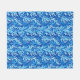 Cobertura em um padrão de frentes estilizadas, inspiradas em algas, em tons de azul gelado, graciosamente entrelaçadas contra um fundo rico de cobalto, para um design dinâmico, tema marinho