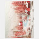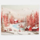 Um design charmoso com efeitos modernos em 3D com casas vermelhas, árvores de abeto e uma paisagem de inverno completa!