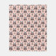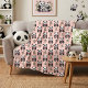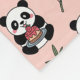 Este design de cobertor de urso panda fofo inclui ursinhos panda de desenho animado segurando bolos de morango. Os ursos panda estão cercados por pedaços de bambu. Há uma cor de fundo rosa claro.