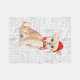 Jogue diversão para aquecer a estação perto da lareira ou jogada sobre o sofá. Chihuahua com chapéu de Papai Noel em um fundo de arte mundial para a decoração de casa de férias do amante do cachorro.