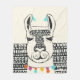 Partido Llama III de Chariklia Zarris. Apresenta a face de uma lama em cores restritas com um fundo geométrico e divertido.