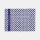 cobertor branco e azul-marinho, com padrão geométrico e branco, com uma faixa de texto editável na parte inferior para que você adicione seus nomes ou mensagens