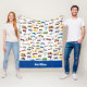Adicione um toque personalizado ao quarto ou berçário do seu menino com este adorável cobertor de velo personalizado que celebra todas as coisas que se movem: caminhões de bombeiros, carros de polícia, helicópteros e aviões, trens, táxis, veículos de construção e muito mais! Adicione o nome do seu filho para um toque pessoal. Este cobertor de velo faz um aniversário personalizado divertido, Natal ou outro presente de feriado.