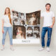 A simple and cute custom dog photo collage and name fleece blanket featuring ten photos, your dog's name in a modern font and a paw print in the centre all set against a white background. Simple to customize by adding ten of your own photos and your dog's name, the background and text color can also be changed if preferred.