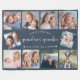 This navy blue 10-photo collage modern blanket features the phrase "World's Greatest Grandma & Grandpa" accompanied by elegant handwritten script typography, a cute heart and the names of beloved grandchildren. An ideal and heartwarming gift for your grandparents on special occasions like Grandparents Day, Christmas, or on a special Anniversary. Customize it with photos of favorite children to create your own unique and cherished keepsake.
