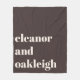 This personalized fleece blanket features a rich brown background with ivory cream typography and a bold name-forward layout. Customize the names to create a cozy keepsake for wedding gifts, engagement presents, or home decor after the celebration. The soft fleece material makes it easy to use on the couch, bed, or during quiet nights in. A meaningful, practical piece couples can enjoy long after the wedding day.