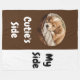 Um cobertor engraçado que mostra quem é o chefe. À esquerda, um lado maior do cobertor diz "Lado do [Nome do Pet]" e à Direita, o lado menor diz "Meu Lado". Escrito de forma fácil para identificar a fonte Chewy em um esquema de cores em castanho e branco oposto. Pode ser utilizado para cães, gatos ou quaisquer animais de estimação com os quais "partilhe" a cama. Também disponível em tamanhos menores.