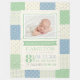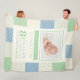 Celebre a sua chegada com este cobertor personalizado de natalidade com o bebê velo. Feita a partir de velo suave e aconchegante, apresenta uma colcha como o estilo em verde e azul de espuma do mar. Adicione o nome do seu bebê, a data de nascimento, o peso, o comprimento e a hora de nascimento para uma manutenção tão significativa quanto confortável. Personalize com sua foto favorita de recém-nascido para criar um design único que seja perfeito para o berçário. O tecido leve, porém quente, o torna ideal para o malabarismo, o tempo da barriga ou a exibição como uma memória tesourada. Este cobertor de bebês personalizado também faz um presente pensativo para novos pais, chás de fraldas ou batizados.