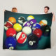 Este cobertor de velo tem bolas de piscina pintadas nele.