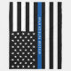 Este cobertor de grande porte apresenta uma bandeira americana de linha azul branca e negra, e uma bandeira azul branca, junto com o nome de um oficial para você personalizar. Pequenos e médios tamanhos também disponíveis em nossa coleção.