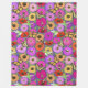polinizadores e zinnias - ilustração/padrão repetido por Sarah Knight. Design apresenta uma variedade de zinnias. As flores estão em um conjunto de cores de bailarina rosa, mauve, lilac roxo, magenta, fuchsia, vermelha, laranja e amarela. Os beija-flores de rubi estão gostando do néctar. A design também apresenta espécimes do gênero Bombus spp., borboletas monarcas e borboletas do tímpano leste. O fundo é uma violeta silenciada.