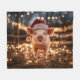 Folheto de velo com um porco adorável vestindo um chapéu de Papai Noel e rodeado por luzes cintilantes de Natal.