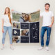 Cobertor de Fleece Presente de Recém-Casados Colagem de Fotos Lembrança de Casamento. Cobertor elegante e personalizado de lembrança de casamento para casais recém-casados. Personalize este design personalizado com quatro fotos de casamento, nomes dos noivos, data do casamento e uma mensagem personalizada.