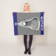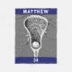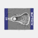 Decor personalizado de lacrosse para jogador ou treinador com design de bastão e bola no fundo do time azul. Para personalizar o texto de edição para adicionar o nome do jogador de lax e o número do grupo.