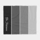Este cobertor de tendências apresenta quatro faixas em diferentes gradientes ombre de preto, carvão e cinzas, e seu nome na tipografia de scripts para um olhar moderno.