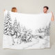 Esta é uma cena impressionante, preta em branco, natalícia, de inverno de um cavalo puxado para trenó. O fundo é branco, com o gráfico preto, fazer um cobertor de velo elegante, mas lúcido, para qualquer presente de Natal.