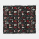Pretty fleece blanket with a red, gray and white Christmas trees pattern on black background.