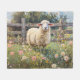 Uma pintura deliciosa de uma ovelha primavera cercada por flores silvestres coloridas num campo sereno. As texturas suaves e matizes vibrantes trazem um charme pacífico e pastoral para esta paisagem rústica.