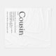 Personalize seu primo para criar um presente único. Este cobertor elegante é uma maneira perfeita de mostrar a eles o quão maravilhosos eles são todos os dias. Você pode até personalizar o fundo para sua cor favorita. Projetado por Thisnotme©