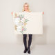 Um cobertor com abóboras brancas de cor d'água de rico com acentos de falso brilho dourado. Cercados por folhas verdes e flores rosas selvagens.