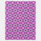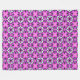 Close-up of a vibrant towel set with purple and black geometric patterns, and a matching washcloth. The patterns create a lively, modern feel.