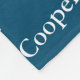 O cobertor de cães personalizado com o nome do seu animal de estimação em um fundo azul com pegadas.
