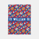 Este cobertor de velo esportivo com um padrão esportivo multi-bola é capaz de ser qualquer cor que você quiser ou você pode manter o caminho vermelho/azul. Na área de personalização, você pode mudar as faixas e/ou a cor de fundo para a paleta de cores da sua sala ou para as cores da sua equipe favorita. Pode ser uma ou duas cores. Você também pode fazer o padrão da bola esportiva e o padrão estelar neste cobertor maior ou menor na área de inclinação. Personalize o cobertor de velo com um número de jogador ou primeiro ou sobrenome. Este é um presente personalizado divertido para dar fãs esportivos.