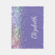 O cobertor de velinha roxo e giro bonito, com o arco-íris faux glitter confetti. Personalize com seu nome em um roteiro branco.