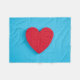 Este design apresenta uma imagem de um coração vermelho brilhante que foi originalmente feito de feltro; é colocado sobre um fundo azul claro.