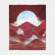 design de paisagem abstrato em vários tons de vermelho com um luar, colinas, árvores, nuvens e aves.
