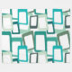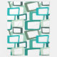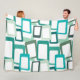 Este cobertor de velo grande tem um design moderno do século médio de retângulos inclinados com buracos brancos em tons de azul-esverdeado.