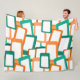 Este cobertor de velo grande tem uma design moderna do século médio de retângulos mastigados com buracos brancos em tons de lacre e tons de laranja.