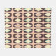 Retro geometric pattern with brown, yellow, and blue diamond shapes in a grid. The repeated design creates a bold, symmetrical, vintage feel.