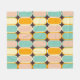 Retro geometric pattern with overlapping vertical ovals in shades of teal, peach, orange, and cream on a dark brown background. Vibrant and symmetrical.