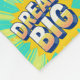 Bold inspirational quote retro bubble lettering bright yellow and blue colors.