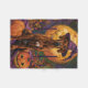 Abraçar o espírito do Dia das Bruxas com esta design encantadora que apresenta um cachorro fofo num chapéu de bruxa rodeado por abóboras entalhadas. Perfeito por adicionar um pouco de charme assustador às suas comemorações festivas.