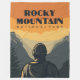 Esta design apresenta um homem caminhando por um vale no rochoso Parque Nacional de Montanha com as palavras "rocky Mountain national park".
