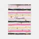 Lindo cobertor de fleece com listras rosa, preto, branco e marfim. Corações de glitter fofos estão espalhados pelo cobertor. Personalize com seu nome.