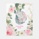 Este design apresenta um belo elefante bebê adormecido, elegante roseiras cor-de-água rosa e verde-azul e dourado. Use o campo modelo para adicionar o nome do seu filho.