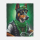 Um amigo peludo atrás das guiadas de uma bicicleta verde brilhante, vestindo uma roupa verde para o Dia de São Patrick que faz as cabeças virarem. O cachorro está vestido num conjunto festivo, completo com uma gravata verde de arco e um chapéu de topo correspondente que se senta suavemente sobre a cabeça. A roupa apresenta designs intrincadas de shamrocks e duendes, fazer claro que este cão está pronto para celebrar o Dia de São Patrício no estilo.