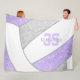 Essa acolhida manta de velo apresenta a imagem de um simples roxo lilaco, cinza e vôlei de tamanho abstrato que cobrir todo o cobertor - os painéis de vôlei lilás e cinzas são misturados com um padrão caleidoscópico floral - nome do atleta e número de camisa são colocados fora do centro, personalizáveis na coordenação lilática e cinza - por katz_d_zynes