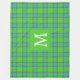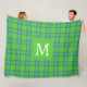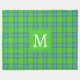 Scottish green and blue plaid monogram fleece blanket .
