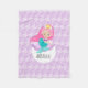 A design apresenta uma princesa de sereia fofa sentada em uma concha roxa giro em um padrão de concha roxa. Personalize-o com o seu nome.