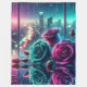 Este design vibrante apresenta três rosas a brilhar com gotas de chuva, uma adição cativante à coleção "H2OArt: Belos cobertores e Cobrir de cor" de Alex Sandra. Colocados contra o pano de fundo de uma paisagem urbana à noite, vistos através de uma janela encharcada de chuva, os rosas estão em tons ricos de lacre e roxo, com uma folhagem verde esmagadora a se juntar à cena vibrante. O fundo tem um efeito bokeh com luzes cativantes, melhorando a qualidade do sonho e artístico da imagem. Este trabalho de arte capta maravilhosamente a elegância dos rosas com uma reviravolta moderna e colorida, fazer-o como uma adição perfeita a qualquer decoração com o tema da natureza. Os detalhes intrincados e as cores vibrantes criam uma composição visualmente impressionante e harmoniosa, ideal para adicionar um toque de beleza natural a qualquer espaço.