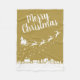 Este elegante cobertor de Natal ouro apresenta a silhueta de Papais noeis que dormem com suas renas, voando sobre as casas em um trilho de estrelas. O texto, em uma fonte branca elegante, é totalmente personalizável.